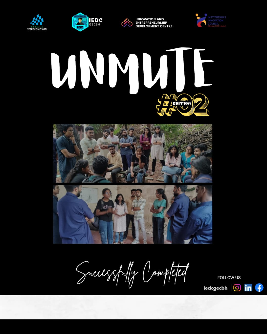 As part of leadership and innovation skill-building, IEDC facilitated “Unmute,” a group discussion event designed to enhance students’ communication, critical thinking, and problem-solving abilities. This platform encouraged students to express their views on innovation-driven themes, thereby nurturing confidence and collaboration. In summary, the year 2024–25 has been a period of meaningful progress and renewed purpose for IEDC GEC Barton Hill. With continued enthusiasm and collective effort, we look forward to scaling greater heights in innovation and entrepreneurship in the years ahead. Thank you.