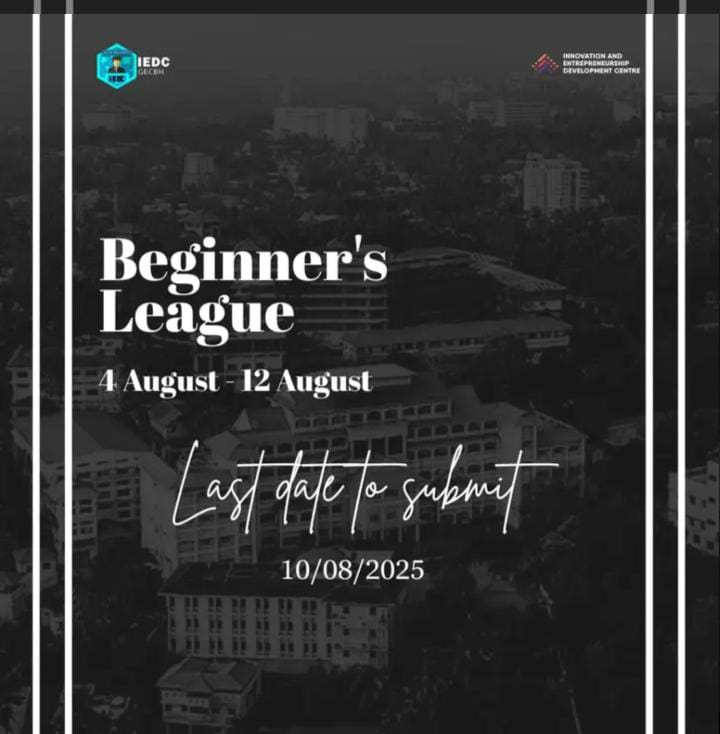 Beginner’s LeagueThe Beginner’s League is a 1-week online tech competition conducted by IEDC GEC Barton Hill (GECBH) in collaboration with IEDC LBS. Designed to be inclusive and fun, the event welcomes students from nine colleges to explore, learn, and compete in a friendly innovation-driven environment